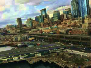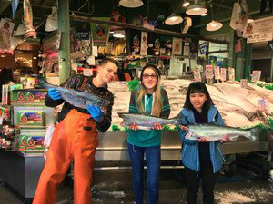 午前中はゆっくり家で過ごしました。午後電車に乗って、おもちゃのお店屋や有名な市場へ行ってSamanthaと生の大きな魚をキャッチしました。そして、観覧車に乗ると、シアトルの景色がきれいで感動しました。その後、私がすごく気に入った、A Fying Ride、「飛行劇場」という乗り物に乗りました。これはアメリカの最も美しい州であるワシントンの上空を飛び回るような感覚で、大きなスクリーンに向かい、霧と風があり、椅子が傾いたりするので、まるで本当に飛行機の上に乗っているような感覚になります。素晴らしいアトラクションなので、シアトルへ行ったら是非乗ってほしいです。
