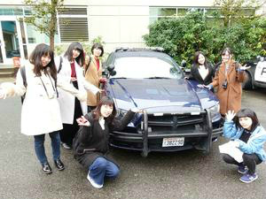 警察署を訪問しました。キレイな女性の方が私たちの質問に答えてくれたり、警察署内を案内してくれました。その方の年齢が18歳ということを聞いて、とてもびっくりしました。全く年下に見えませんでした。実際にパトカーに乗せてもらったり、留置所を見学したりしました。その後、裁判所も見学しました。裁判官の制服を着させてもらったり、オフィスを案内してもらいました。