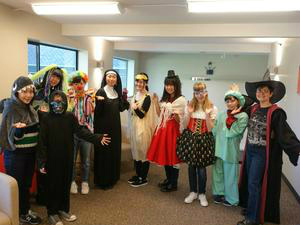 りなのホストシスターとホストブラザーが来てくれました。とても元気で可愛かったです。また、この日はみんなでコスチュームを着ました。他にもいろんなゲームをしたり、Laura からアメリカの行事について教わりました。