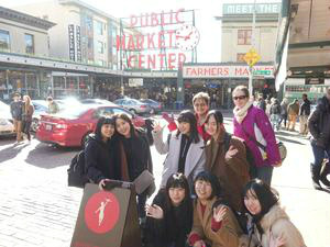 いろんな所に行きました。午前中はワシントン大学に行き、午後はケリー・パークやベルタウン、パイク・プレイス・マーケット、ガムウォール、セーフコ・フィールドなどへ行きました。アメリカの地誌の授業で習ったところを実際に行けたので、とても嬉しかったです。この日にみんなでおそろいのTシャツも買いました。また、宇和島という日本食が売られているお店で肉じゃがの材料を買いました。私はまだホストファミリーに何も作っていなく、作る料理も考えていなかったので、Laura とまみと一緒に買いました。