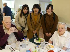 午前中にグリーンリーバーカレッジに行って大学を見学し、午後はシニアホームに行きました。アメリカの大学は青陵よりも何十倍も広かったです。シニアホームは、とても大きくていろんな施設がありました。一部屋一部屋が豪華でホテルの様でした。また、私たちは「ふるさと」や「カエル」の歌を披露しました。喜んでもらえて嬉しかったです。