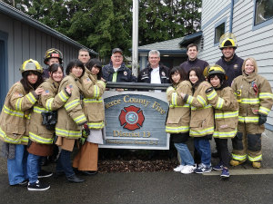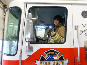 この日は消防署に行き、見学したり質問したりしました。消防服を着せてもらいましたが、とても重かったです。他にも、ホースを使って放水体験をしたり、消防車や救急車に乗ってみたりしました。