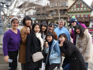 スタディセンターに着いたらすぐにバンに乗り、約2時間かけて Leavenworth というドイツ村に行きました。いろいろな帽子があるお店や、クリスマスのオーナメントがたくさんあるお店、チョコレート屋などに行き、お買い物を楽しみました。