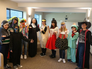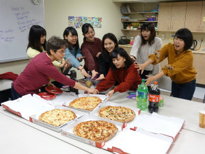 この日はイースター、ハロウィン、クリスマス、サンクスギビングという American holiday を体験しました。お昼に食べた、ターキーやパンプキンパイがとてもおいしかったです。午後はみんなで桜のギフトカードを作りました。 Lin が作り方を教えてくれて、上手にできて嬉しかったです。