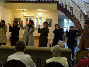 午後はシニアセンターに行きました。シニアの方々とたくさんお話をした後、「カエルの歌」、「あめふり」、「ふるさと」を英語で歌いました。