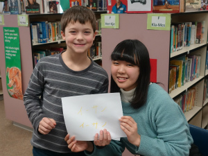 Logan の学校でプレゼンをするため、Lin、Logan と歩いて学校に行きました。みんなと学校で合流し少し練習した後、すぐに小学生へのプレゼンが始まりました。日本で何度も練習した成果が出せてよかったです。プレゼンが終わったら、子どもたちの名前をカタカナで書いてあげました。みんなとても喜んでくれました。お昼を子どもたちと食べ、外で一緒に遊んだ後、午後のプレゼンが始まりました。すべてのプレゼンを終えた後は、みんなクタクタでした。