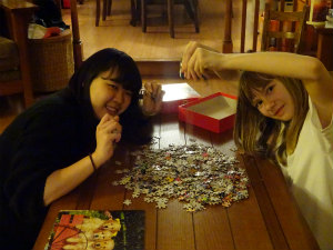 家に帰ったら3人でパズルを楽しんだ後、スーツケースを整理し、また夜遅くまでプレゼント作りに励みました。