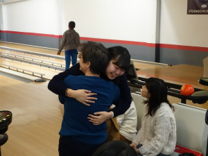 午後はボウリング場に行き、場内のレストランでランチを食べ、その後はみんなでボウリングを楽しみました。 Laura がとても上手で驚きました。