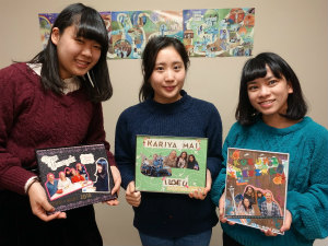 午前中は最初に4種類のドーナツをみんなで食べた後、ホストファミリーに向けたプレゼント作りをしました。私たちは前日の授業がなくなった分プレゼント作りの時間が減ったので、みんなで真剣に取り組みました。
