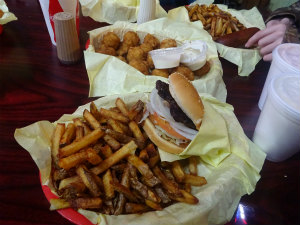 夜は Burger Express に行き、レギュラーのハンバーガーと Lin おすすめのマッシュルーム揚げを食べました。特にマッシュルーム揚げはジューシーでとても美味しかったです。