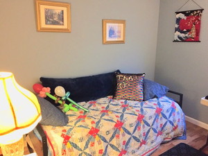冗談が好きなとても明るいお母さんです。いつも Sheila (シーラ)と呼んでいました。よく素敵なカチューシャをしています。着物やお城・神社などの日本の文化が好きで、日本にも来たことがあると話してくれました。Sheila は特にお土産で持っていった日本のお菓子やお茶を気に入って食べてくれました。しおんさんのホストマザー Mary と親しく、一緒に教会でボランティア活動をしています。夕食の後よく Facebook を見て面白いものを見つけて私に見せてくれました。私は毎日 Sheila の話を聞くのが楽しかったです。過去ステイした日本人の学生のことをよく覚えていて、今でも一人ひとりのことを大切に想ってくれています。私が課題をしているとそばで見守ってくれて、様々な英語表現を教えてくれました。私のために新しく部屋を改装してくれたり、毎日寒い中スタディセンターまで送ってもらったりなどと大変お世話になりました。 |