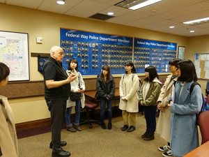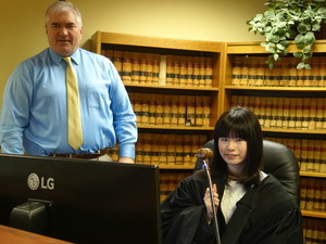 この日は警察署に行きました。考えてきた質問はあまりすることができませんでしたが、たくさんの部屋を見ることができ、いい経験となりました。そのあと裁判所にも行き、裁判官の方が着ている法服を着ることができました。
