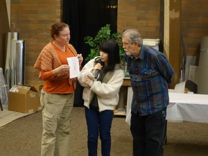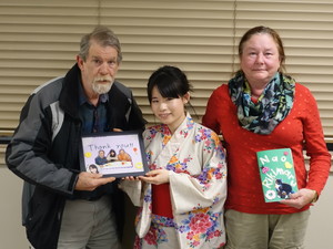 プレゼンテーションは、少し止まったりしてしまいましたが、何とか最後まで発表できました。終わって席に着くと、 David と TerriLee が褒めてくれました。他の方も一生懸命聞いてくれ、クイズにも楽しんで参加してくれたので嬉しかったです。プレゼンテーションの後は、作った写真立てやジャーナル、缶バッジを一人ずつ渡しました。