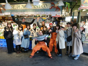 一日観光の日で、ワシントン大学、Theo というチョコレート店、 Space Needle 、 Pike Place Market (市場)に行きました。4日ぶりにみんなに会えて嬉しかったです。ワシントン大学の図書館には数えきれないほどの本があり、圧倒されました。チョコレート店には、唐辛子やフランスパンなどの日本ではあまり見かけないようなフレーバーのチョコもたくさんあり、テンションが上がりました。味見ができたので、おいしかったチョコを買いました。 Space Needle は値段が少し高かったのですが、シアトルを一望でき、いい思い出になりました。床がガラスで透けている部分があり、楽しかったです。 Pike Place Market ではみんなでおそろいのTシャツを買いました。枚数が足りなかったのですが、店員さんがその場で刷ってくれました。また、授業で習った有名な魚屋やスターバックス1号店も見ることができ、いい思い出になりました。