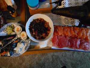 夕食には、 David と日本食を作りました。手巻き寿司だけのつもりでしたが、刺身やマグロのアレンジ料理も作りました。 David が一生懸命手伝ってくれて嬉しかったし、より仲良くなれた気がしました。 TerriLee も喜んでくれて、夕食後も「本当においしかった。あれは私のお気に入りの料理よ。ありがとう」とずっと言ってくれました。