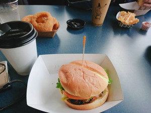 夕食は、ホストファミリーのお気に入りのハンバーガー屋に連れて行ってもらいました。ハンバーガーももちろんおいしかったのですが、シェイクがおいしくてびっくりしました。このシェイクだけ買って帰る人も多いと言っていました。また、ポテトも店内で切って揚げているらしく、ホクホクでおいしかったです。