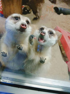 動物園と水族館に行きました。雪のため開いていない所も多々ありましたが、2つの施設が一緒になっていたので、白いキツネやオオカミ、カワウソなどたくさんの動物を見ることができました。昼食は園内のレストランでハンバーガーを食べました。崩れやすくて食べるのに苦戦していたら、 David に笑われました。昼食後、ミーアキャットを見に行ったら、丁度エサの時間で、私の目の前のガラスにエサを投げてくれました。目の前で食べている様子を見たのは初めてだったので、いい思い出になりました。最後に TerriLee がお土産を買ってくれると言ってくれたので、一番の思い出のミーアキャットのぬいぐるみを選びました。