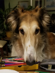 ロシアンウルフハウンドという犬種で、 Gwen のことが大好きな犬でした。出かけるときはいつも一緒で、私の送り迎えも一緒についてきてくれました。 |