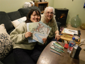 この日もドッグパークに行ってから、夕食まで Gwen と塗り絵をしました。