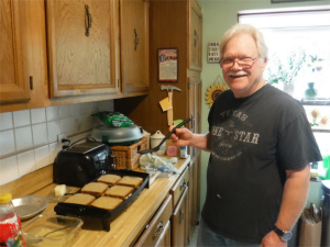 朝、Ben がフレンチトーストを作ってくれました。バターとシロップで食べたらとても美味しかったです。