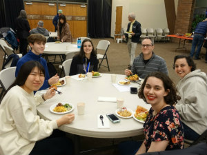 夜はウェルカムパーティーで、ホストファミリーが作ってくれた料理を食べながらゲームをしました。みんなのホストファミリーとたくさん話せて楽しかったです。