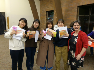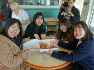 午前中は老人ホームで使うプレゼンの道具を準備して、歌の練習をしました。その後、Tacoma Mall というショッピングモールに行きました。Krispy Kreme DOUGHNUTS で7種類のドーナツをみんなで分けて食べました。想像していたよりも甘くなくおいしかったです。その後、See's CANDIES でチョコを買って試食をしたのですが、甘すぎて驚きました。他に、その場でぬいぐるみに綿を入れて作れる店があり、日本では見たことがなく新鮮でおもしろかったです。