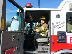 消防署を訪問しました。日本で考えてきた質問に答えてもらいました。その後、防火服を着て放水訓練を体験したのですが、防火服とホースの重さには驚きました。消防士のみなさんは気さくで優しく、いろいろなことを説明してくれました。女性消防士の方にも会うことができました。