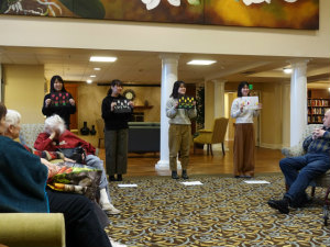 午前中は老人ホームで歌う歌の練習をしてから、Green River College へ行きました。そこで留学中の3人と久しぶりに再会しました。大学はとても広く、いろいろな施設がありました。それから老人ホームへ行きました。本当にホテルのような建物で高級感がありました。私はプレゼンの前にピアノを弾いたのですが、1人の女性が「とってもよかった」と言ってくれて、うれしかったです。