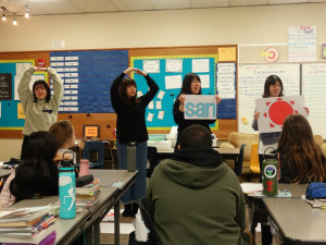 小学校を訪問し、日本語のプレゼンをしました。最初は私たちも子どもたちも緊張していましたが、時間がたつにつれてほぐれていきました。アメリカの小学生は積極的に授業に参加し、反応してくれるので、とても楽しかったです。昼休みはすぐにランチを食べ終えて、子どもたちと遊びました。私たちが外に出ると、女の子が「もう一度授業の内容を教えてほしい」と質問してきました。その姿に驚きながらも、私たちのプレゼンに興味を持ってくれたのだと感じ、うれしかったです。