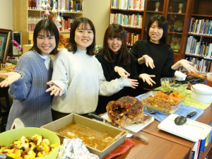 昼は、Jane とGwen、Alissa が作って持って来てくれた料理を食べました。Jane が作ってくれた料理はターキーでした。Jane は前日からターキーの仕込みをしていました。初めて食べましたが、とてもおいしかったのでたくさん食べました。