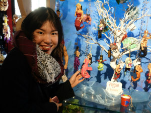 最初にクリスマスショップに行きました。サンタさんのグッズや綺麗なオーナメントが大量にあり、全て持ち帰りたくなるほどでした。また麗に似ているオーナメントを見つけました。