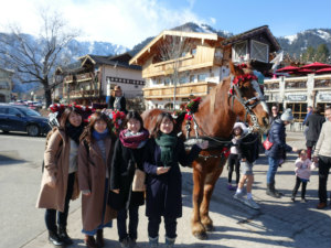 昼は、ドイツ料理のレストランで食べました。いろいろな種類のソーセージやパスタなどのドイツの伝統料理を食べました。1つだけ辛いソーセージがありましたが、どれも美味しかったです。また Leavenworth にはたくさんの店が並んでいました。被り物の店やくるみ割り人形の店、チョコレート専門店などがありました。私が何も買わずに買い物を楽しんでいたとき、 Laura が私に冗談で「あなたはケチだね」と言いましたが、9ドルの小さいくるみ割り人形を購入したら、「やっぱりあなたはケチじゃないわね」と言われました。また、馬車を引いた馬がいました。足音を立てながら歩いていて、かわいかったのでみんなで写真を取りました。