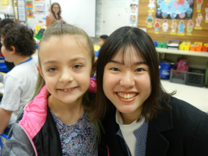 最後に低学年のクラスで発表すると、1人の女の子が私たちに「ハグしてもいい?」と聞いてくれました。私たちが「もちろん!」と答えると次から次へと子供たちがハグをしてくれました。本当にかわいくて「来てよかった」と思いました。