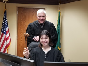 この日は、警察署と裁判所を訪問しました。警察署ではパトカーやバイクを間近で見ることができ、「日本よりもかっこいいデザインだな」と思いました。また、手錠や留置所を初めて見て「こんなに狭い部屋なのか」と驚きました。裁判所では真っ黒な法服を着て、実際にガベルを鳴らしてみたり、裁判官になりきることができました。いろいろな偉い方の話を聞くことができて貴重な時間でした。