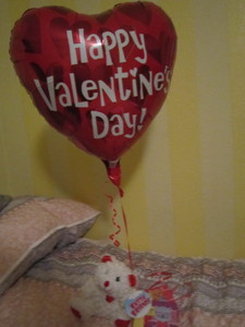 そして一旦家に帰り、日本から持ってきたお土産を Jane と Daryl に渡しました。Jane はおせんべいやお菓子、マスキングテープ、Daryl は消えるボールペンをとても喜んでくれました。またその日はバレンタインデーだったので、Jane がかわいい風船とクマのぬいぐるみとチョコレートをプレゼントしてくれました。とても嬉しかったです。