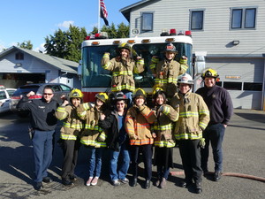 消防署を訪問しました。多くの質問に答えてもらったり、防護服を着て放水体験をしたりしました。消防士の方は、私たちにわかりやすく消防士の仕事や消防車について教えてくれました。防護服はとても重く、こんなに重いものを担いで走っていると思うと感動しました。そして女性の消防士の方に初めて会うことができました。とてもかっこよかったです。