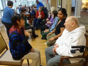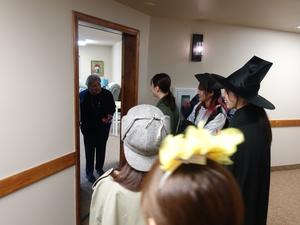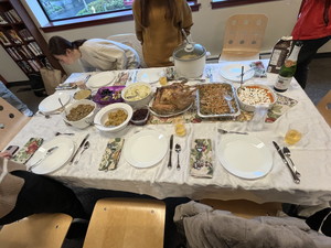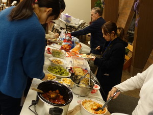 というスポーツ用品店やクラムチャウダーを買いにレストランに行ったりしました。夕方くらいに一度各々のホストファミリーの家に戻り、各家庭が作ったり買ったりした料理をスタディセンターに持ち寄ってウェルカムパーティを開いてもらいました。ファミリーフラッグ(それぞれの家族を象徴する絵)を作ったり、ほかのファミリーとの交流もあって楽しかったです。