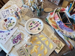 は絵を描くのがとてもうまくて、特に絵の具のグラデーションを活かして花や鳥を描くのが得意らしいです。家にある大量のエナメル絵の具を借りて、Cindy