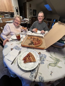 と受け取りに行きました。お店のピザを家で食べるのは人生で初めての経験でした。ピザを食べながら私の好きな映画のことを話したら、夕食後早速リビングのテレビで見てくれました。