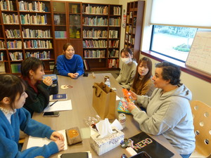 老人介護施設に行って日本語の1〜10までのカウントを教え、「あめあめふれふれ」の歌を歌いました。私たちの発表を真剣に聞いてくれたので、とても嬉しかったです。発表が終わった後は free talk