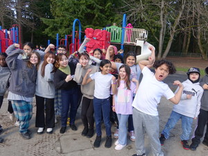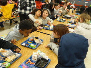 の教室に訪問したのでとても疲れました。お昼は子どもたちと一緒にご飯を食べました。日本の給食とは異なり、フライドポテトやナゲットなどの揚げ物を食べていて「アメリカン」だなと感じました。アメリカの小学生はピアスやネックレスを身につけていて校則に縛られず、のびのびと生きている感じがしました。私たちが訪問した小学校は平屋の作りになっていて、教室の雰囲気もクラスによって異なっていました。
