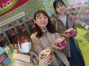 では大福やお菓子の甘いものから油揚げなどの幅広い日本食が売られていました。デザートに大福を買って食べました。二人とも「おいしい」と言って食べていたので嬉しかったです。