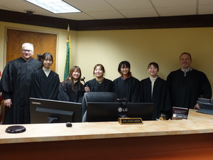 話を聞きました。事前に質問事項を考えて行ったのですが、口調が早く、理解するのが難しかったです。警察署では、留置室を見学し、初めて見る光景に驚きました。裁判所では、裁判官がふだん着用している黒いコートを着させてもらいました。コートは思ったよりも重くてしっかりしていました。