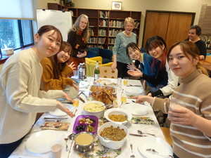or Treat」と言ってお菓子をもらってきました。戻ってきたら今度はお昼の準備。サンクスギビングデーの大きなターキーやホストファミリーたちが持ち寄ったホリデー料理などを楽しみました。食べ終わったら、お次はイースター。アリッサが部屋に隠した卵を探します。結構難しくて私は1つしか見つけられませんでした。その後、翌日小学校でやるプレゼンの練習をしました。