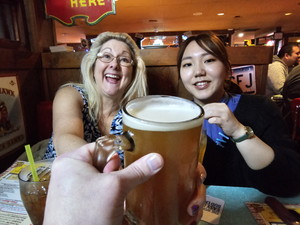朝からみんなでレブンワースという車で3時間くらいかかるドイツ村に行く予定のため、私は朝6時半に起きました。まだ外が真っ暗で驚きました。スタディセンターでみんなと合流してからキムの運転で出発しました。レブンワースに着いたら、まずお昼を食べました。分厚くて重い野菜ブリトーをシェアして食べました。その後、一通り先生とお店を回ったらグループに分かれて買い物をしました。私はキーホルダーやブレスレットなどを買いました。帰りの車の中で、スマホで好きな音楽を交互に流して楽しんでいました。