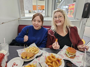 に行きました。ホストファミリーが「初日はしんどくて楽しめなかったでしょ」と再び連れて来てくれました。ありがたい。ハンバーガーレストランでハンバーガーとバニラシェイクを食べました。キッズサイズにしたけれど、私には充分で少し残しました。
