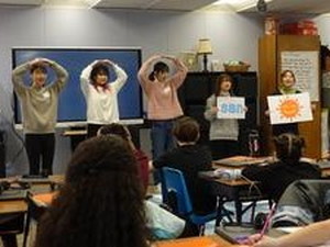 小学校へ行ってプレゼンをする日。プレゼン資料を持って小学校へ。まず訪問したのは低学年の教室。数の数え方のプレゼンと「雨、雨ふれふれ〜」の歌を歌いました。中学年からはプレゼンのほかカタカナで子どもたちの名前を書いてあげました。午前中だけで7クラス回りました。お昼は体育館で小学生と一緒に食べました。午前中に訪問したクラスで話した子がグループに入れてくれて、話しながら食べました。昼休みには外に出て一緒に遊びました。アメリカの小学生は何をして遊ぶのか分からなくて、持っていた花を女の子に跪いて渡してみたら、「キャー結婚するの?」と盛り上がりました。昼休みが終わったらまたプレゼン再開。最後のクラスでは終了後先生にプレゼン資料をプレゼント。合計で13クラス回りました。多すぎ。帰るときはみんなぐったりしてました。アリッサがみんなにシェイクを買ってくれて、みんなで乾杯しました。疲れた脳に響いておいしかった。