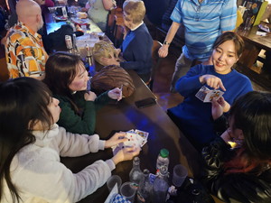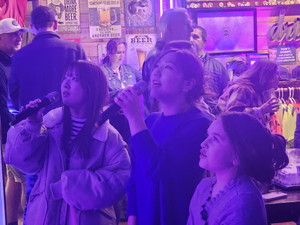 に行って帰りが遅くなるため、友美はうちのホストファミリーの家に泊まる予定でした。家に着いて、友美と話をしたり、犬と一緒に遊んだりしました。しばらくしたらホストファミリーの息子のクリスがやってきて、クリスの運転でカラオケに向かいました。マイクに「クリスは独身彼女無しだから、惚れるなよ」と言われました。大丈夫でした。お店に入ると、日本のようなカラオケボックスではなく、バーでみんなで歌うという感じでした。最初は絶対恥ずかしくて歌えないと思いましたが、だんだん盛り上がってきて頑張って歌いました。音楽が大きすぎて全く自分の声が聞こえなかったけれど、歌い終わったらホストファミリーたちが「イエーイ」とリアクションしてくれたので、とても楽しかったです。私はクラスメイトとデュエットで2曲歌いました。最後まで爆音でうるさかったけれど、とてもアメリカらしくて楽しかったです。