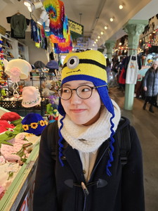 ホストファミリーとパイクプレイスマーケットへ。まず建物に入ったら日本のお菓子などが売られているお店に入り、ガムを買ってもらいました。日本人の店員さんがいて、ホームステイ中だと言ったら「頑張ってね」と言われました。お店を回った後はガムを嚙みながらガムウォールへ。壁一面にカラフルなガムがいっぱいで、私も噛み終わったガムを壁にくっつけました。野菜ショップで朝食用のバナナを買ってもらったら、マイクに「凜はミニオンだ」と言われました。確かに私はそのとき眼鏡を掛けていたのでなおさらミニオンでした。その後帽子屋さんに行ったらミニオンの帽子があり、「私だ」と言ったらマイクがミニオン帽子を買ってくれました。お昼はクラブポットというレストランへ行き、パンの容器に入ったクラムチャウダーを食べました。おいしかったけれど、やっぱり私には量が多かったので残しました。次にハーレーダビッドソンというバイクのTシャツ屋さんに行きました。マイクはバイクが好きで、私にTシャツと記念コインを買ってくれました。