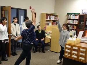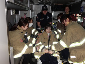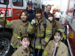 消防署へ行きました。住宅街にある小さな消防署で防火服を着せてもらったり、消防車に乗せてもらったりしました。質問リストを使い質問して、帰りにクリップなどのお土産をもらいました。スタディセンターに戻ったら再びサンキュージャーナル作成にとりかかりました。私はこの日も脳が疲れてアイディアが降りてこないため、みんなの応援をしていました。